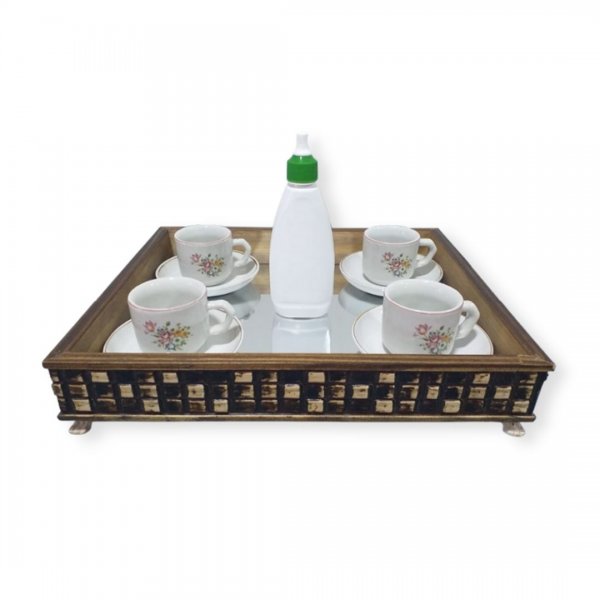 Bandeja Espelhada Média Com Pés Decoração Mesa Mosaico